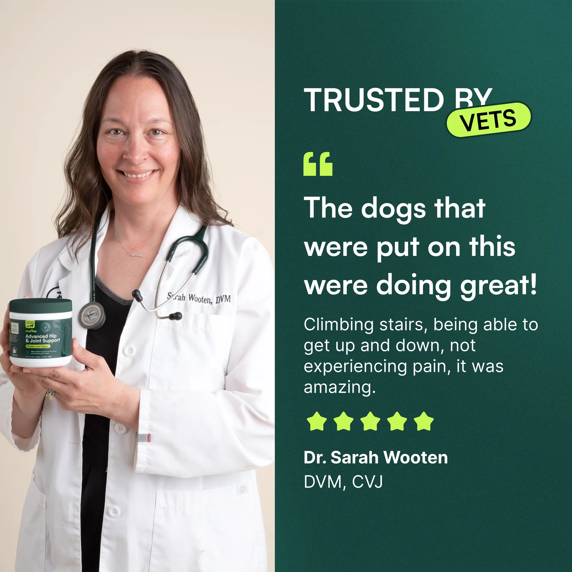 The Truth:Supplements including ingredients like Glucosamine, Chondroitin, MSM & Green Lipped Mussels, like our scientifically-formulated Advanced Hip & Joint Support, have been shown to help maintain joint health, reduce occasional discomfort, and support mobility. Our products work hand-in-hand with your vet’s recommendations, complementing any necessary treatments with holistic, well-researched ingredients.